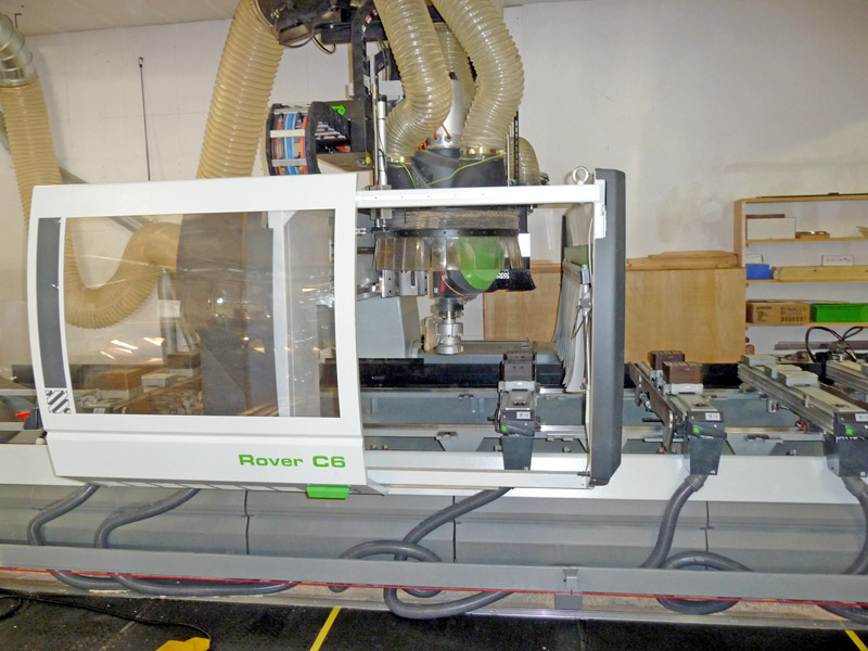 Nous disposons d'un centre d'usinage numérique 5 axes Biesse Rover C6 et d'un centre d'usinage angulaire pour fenêtres.